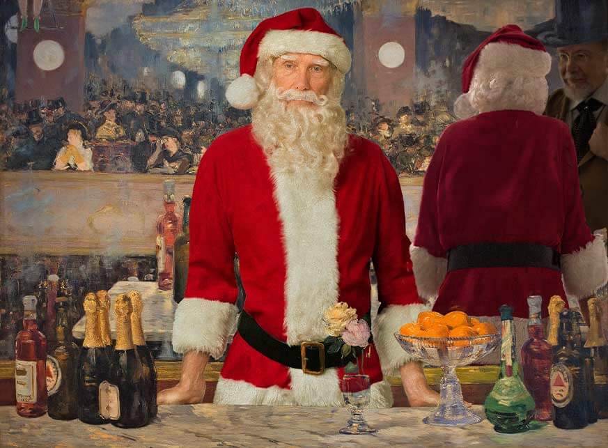 This exhibition is a series of images created by artist, photographer Ed Wheeler that is sure to delight museum visitors of all ages. He imagines Santa entering into the great masterworks of art, with humor and reverence for the original works. This exhibition of 34 prints of Wheeler dressed as Santa invading known paintings as the main subject, part of a group or by himself in the landscape, is Wheelers homage to the original paintings while offering art lovers an extra fun reason to smile. To create these images, Wheeler uses a multi-step process to completely integrate Santa into the lighting, brushstrokes and tonal values of a particular painting while maintaining the fidelity of the original. Wheeler selects paintings with composition that would welcome a Santa intervention, or sometimes he just loves the painting and wants to be a part of it.