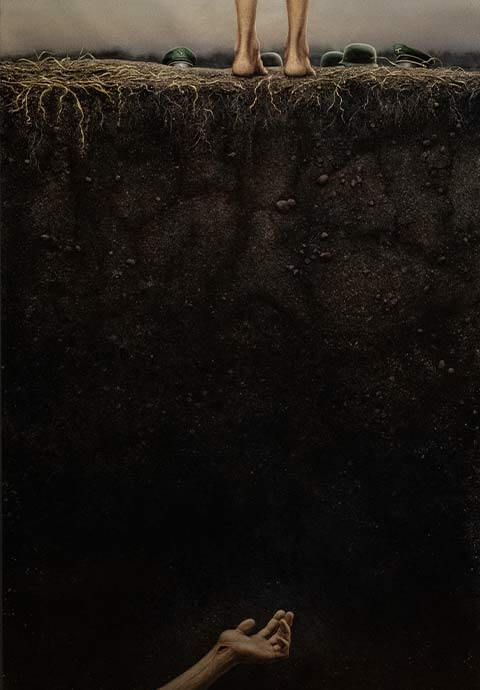 Originally from Venzuela, Gregory Strachov, works primarily in watercolor. His initial studies in Biology and Chemistry, granted him degrees in both fields, but his painting education came later when he attended the Pratt Institute to receive his undergraduate art degree which was granted to him in just one year. Holocaust was a product of his self-described ‘Dark Period’ which took place during the loss of his grandmother and father. This painting was based on stories told to him by his beloved grandmother.