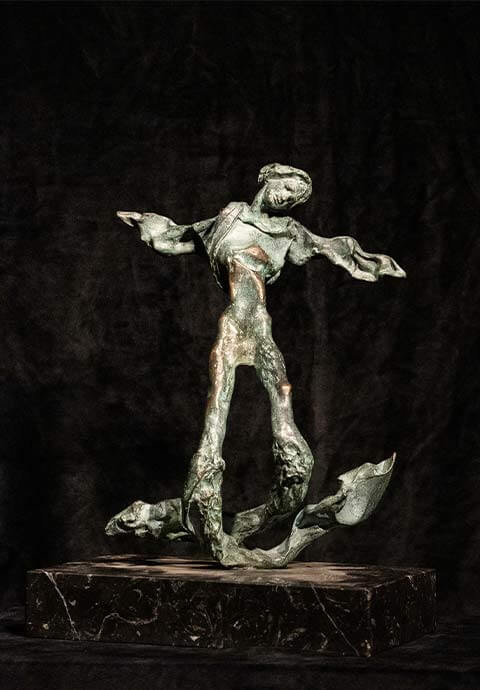 In Greek mythology, the Gods on Olympus had two winged messengers whom they used to issue their orders and made known their desires: Hermes and Triton. Triton was the son of Poseidon and the sea-nymph, Aphrodite, Gods of the sea and of rivers and fountains. The modeled body of Triton, metamorphosed in Dalí’s hands, shirks any reference to the human anatomy to better convey the tumultuous motion of the sea. The work of Dalí lives on in St. Petersburgh Florida at The Dalí Museum. “Someday I may die, though it is unlikely, I hope the people in cafes will say, ‘Dalí has died. But not entirely.’” – Salvador Dalí