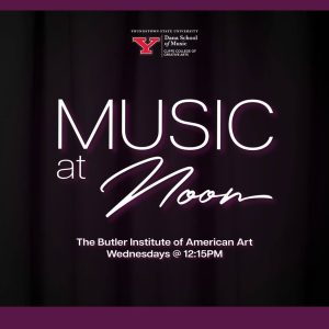 Music at Noon Live music performances at the Butler In collaboration with YSU's Dana School of Music, Music at Noon performances are held Wednesday's at 12:15pm in Beecher Court during the school year. YSU students, faculty and guest artists take the stage to perform an exciting selection of music. Come support Dana , ... - 12Young Friends Adventure10:00 am - 11:00 am