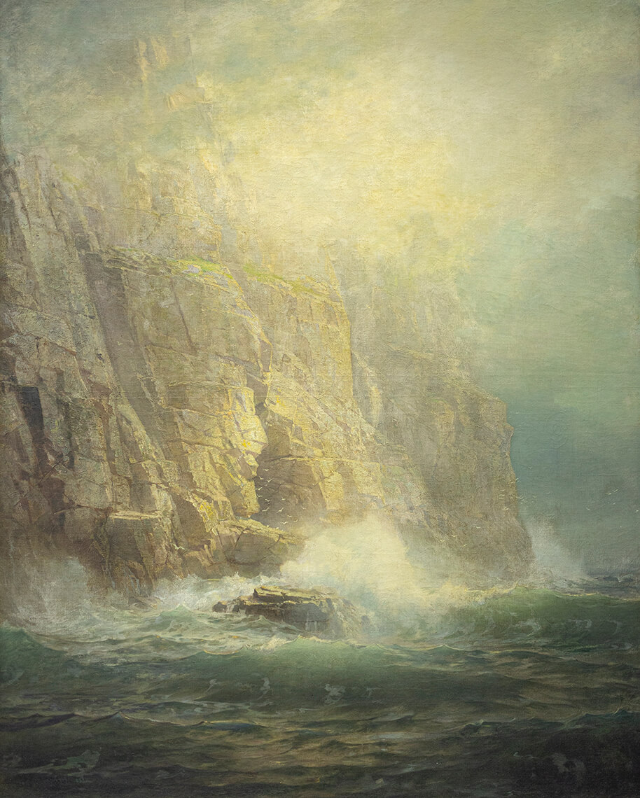 The Beecher Court was dedicated in 1987. It is an elegant light-filled multi-use space, suitable for hosting dinners, concerts, lectures, and more. The lower level of the court showcases work by three generations of the Wyeth family, as well as marine paintings by Frederick Waugh, Joseph Boston, Soren Carlsen, and others. Contemporary artists represented on this level include George Dombek, Teo Nguyen, and Fred Staloff.