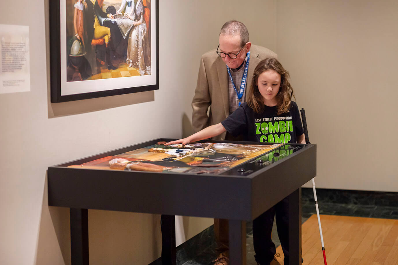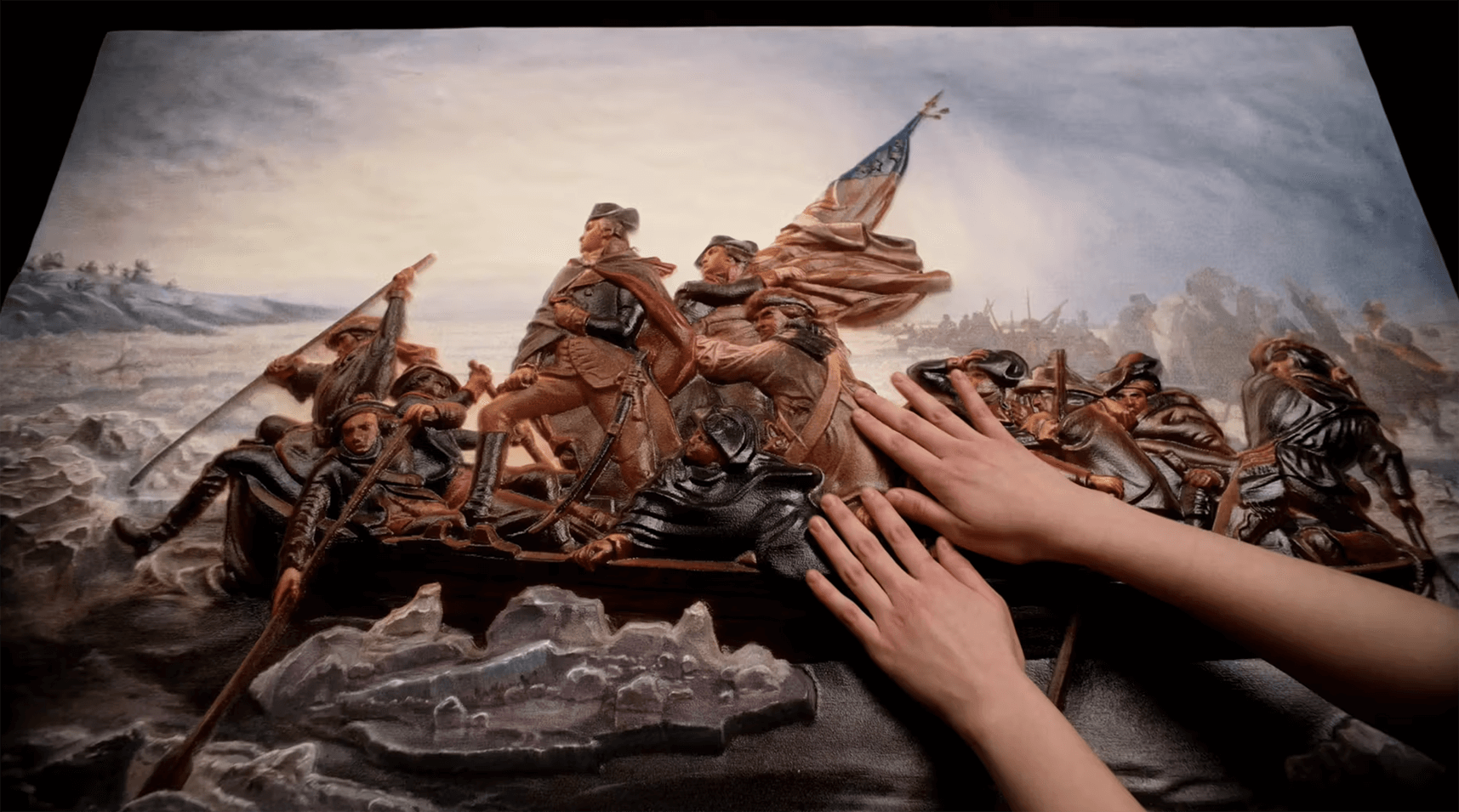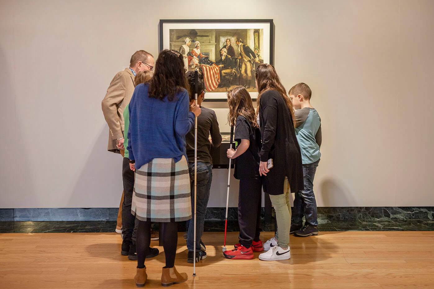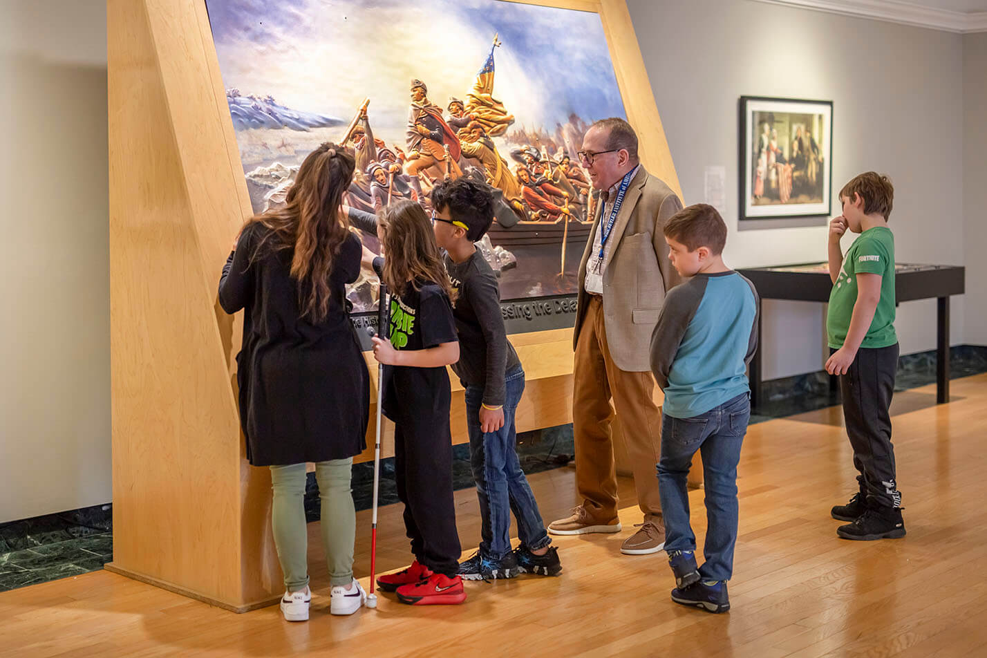 Blind visitor with “Crossing the Delaware”