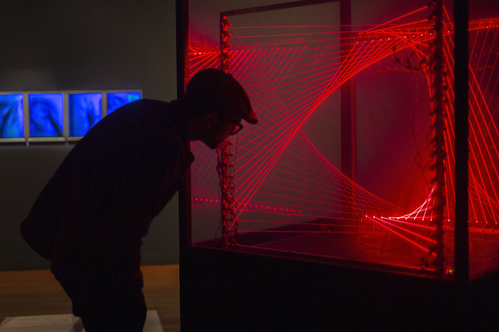 Matthew Schreiber’s solo exhibition at The Butler Institute of American Art consists of three types of light-based artwork, including laser light sculpture and holography. In Schreiber’s research for the exhibition, he came across online interviews with Director Lou Zona focusing on the Butler’s Bermant gallery of Art and Technology. This unusual focus by the Institute was of particular interest to the artist as he began the process for the exhibition. Schreiber’s approach to Art and Technology includes its scientific process and reflection on popular culture.